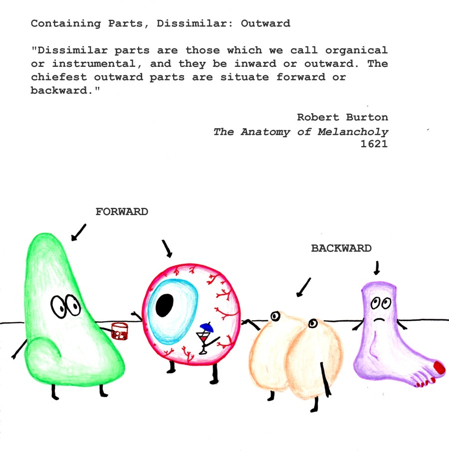 Anatomy of Melancholy – Pt. I, Sec. 1, Mem. II, Subs. 3 – Containing Parts, Dissimilar, Outward (quote contained within image).