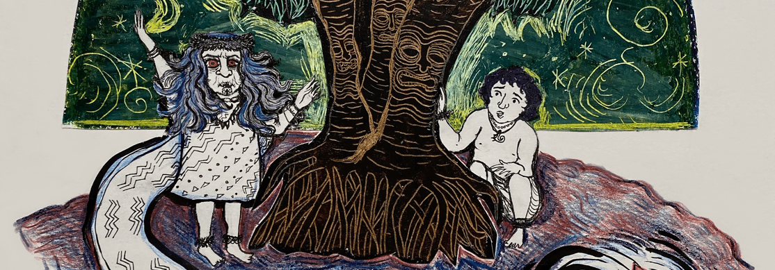 I spoke with Liza Adamandidou B. whose illustration accompanies DeMarco’s piece in New Gothic Review. She similarly found appeal in the unfamiliar historical perspective of ‘The Hala Tree…’.